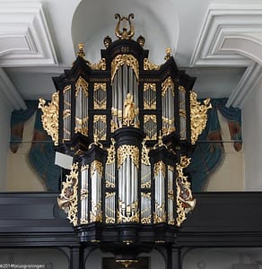 Albert Anthoni Hinsz verbouwde in 1773/1774 het instrument grondig. Een nieuw rugwerk werd toegevoegd en het hoofdwerk werd verbreed. Hinsz vulde, zoals hij ook in andere orgels wel gedaan heeft, de ‘kleine octaven’ van Schnitger aan. Daarvoor moesten alle windlades worden aangepast. Hiermee kreeg het orgel een nieuwe dispositie. Het vergrote orgel kreeg tevens een nieuwe plaats op een hiertoe aangelegde galerij tegen de westmuur.